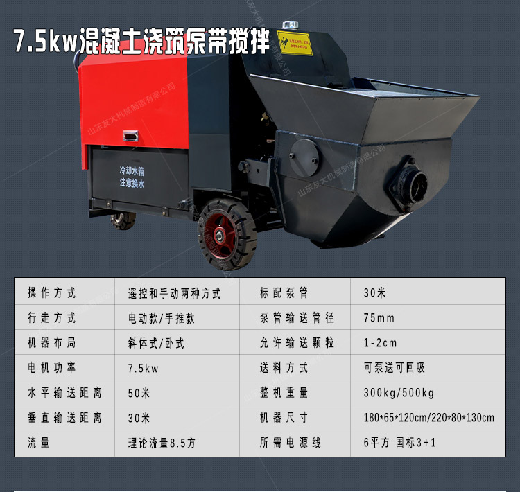 7.5kw电动浇筑泵浇筑是混凝土浇筑专用设备,其浇筑混凝土连续性好、输送效率高、施工方便、操作简单。